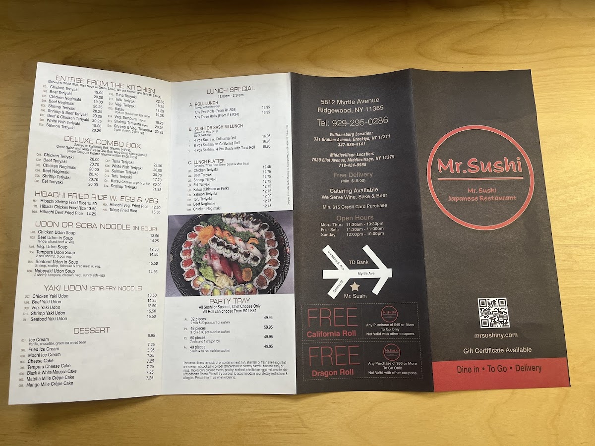 At Mr Sushi Japanese Restaurant (Ridgewood) Menu, you’re in for a delightful experience. Located at 58-12 Myrtle Ave, Flushing, NY, this local gem offers a variety of authentic Japanese dishes, from fresh sushi rolls to mouth-watering sashimi and traditional entrees. Whether you’re craving a simple, flavorful hand roll or something a bit more adventurous, their diverse menu ensures there’s something for everyone.