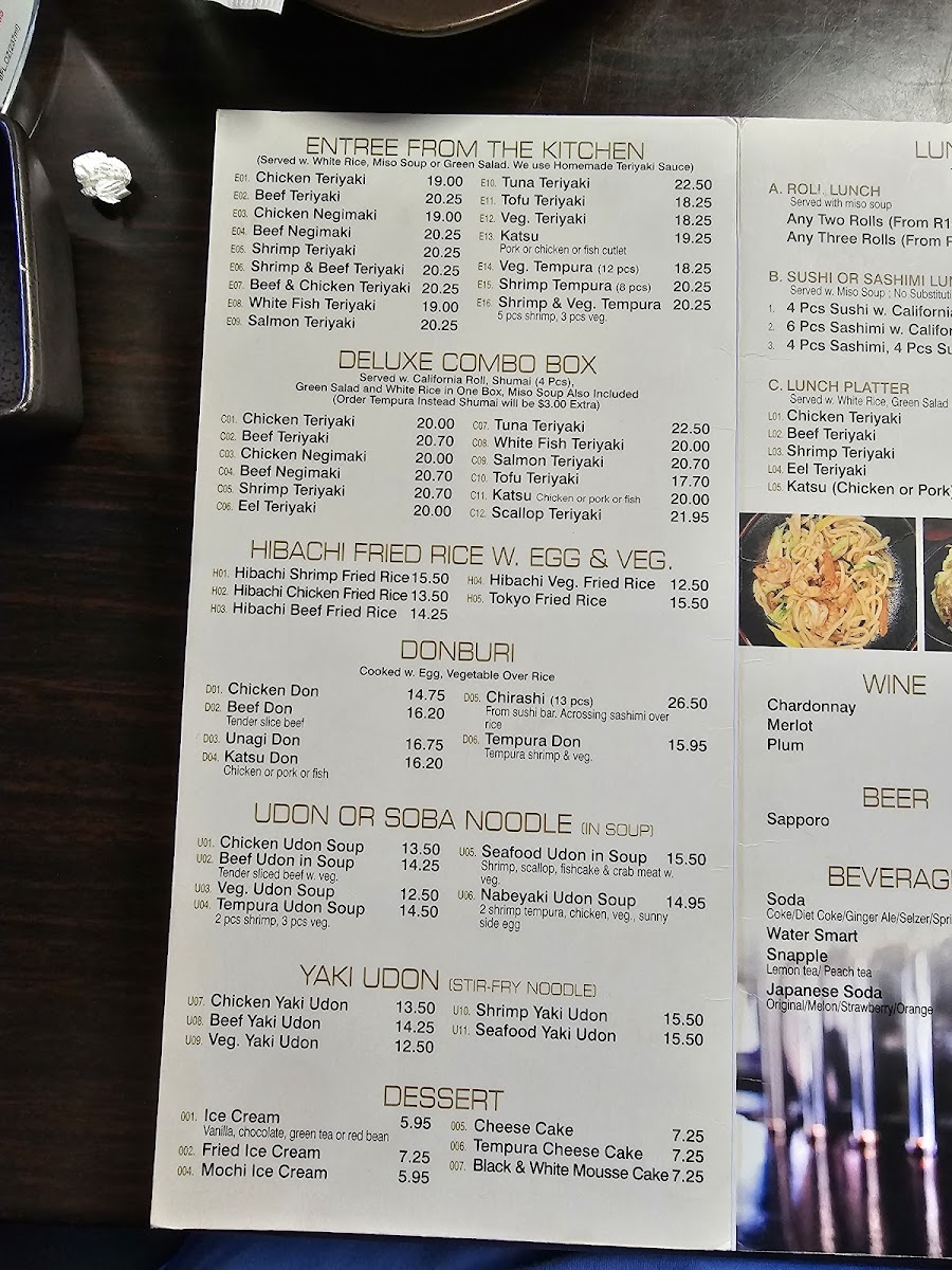 The menu features classic favorites like spicy tuna rolls, crispy tempura, and hearty ramen, all made with the finest ingredients to bring out the true essence of Japanese cuisine. Each dish is crafted with care, ensuring the perfect balance of flavors that make every bite memorable.